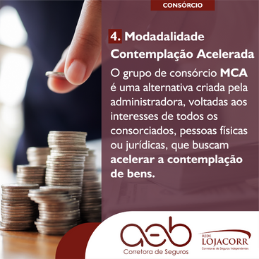 MCA: é uma alternativa criada pela administradora, que busca acelerar a contemplação de bens. Este produto é constituído por consorciados investidores e compradores.